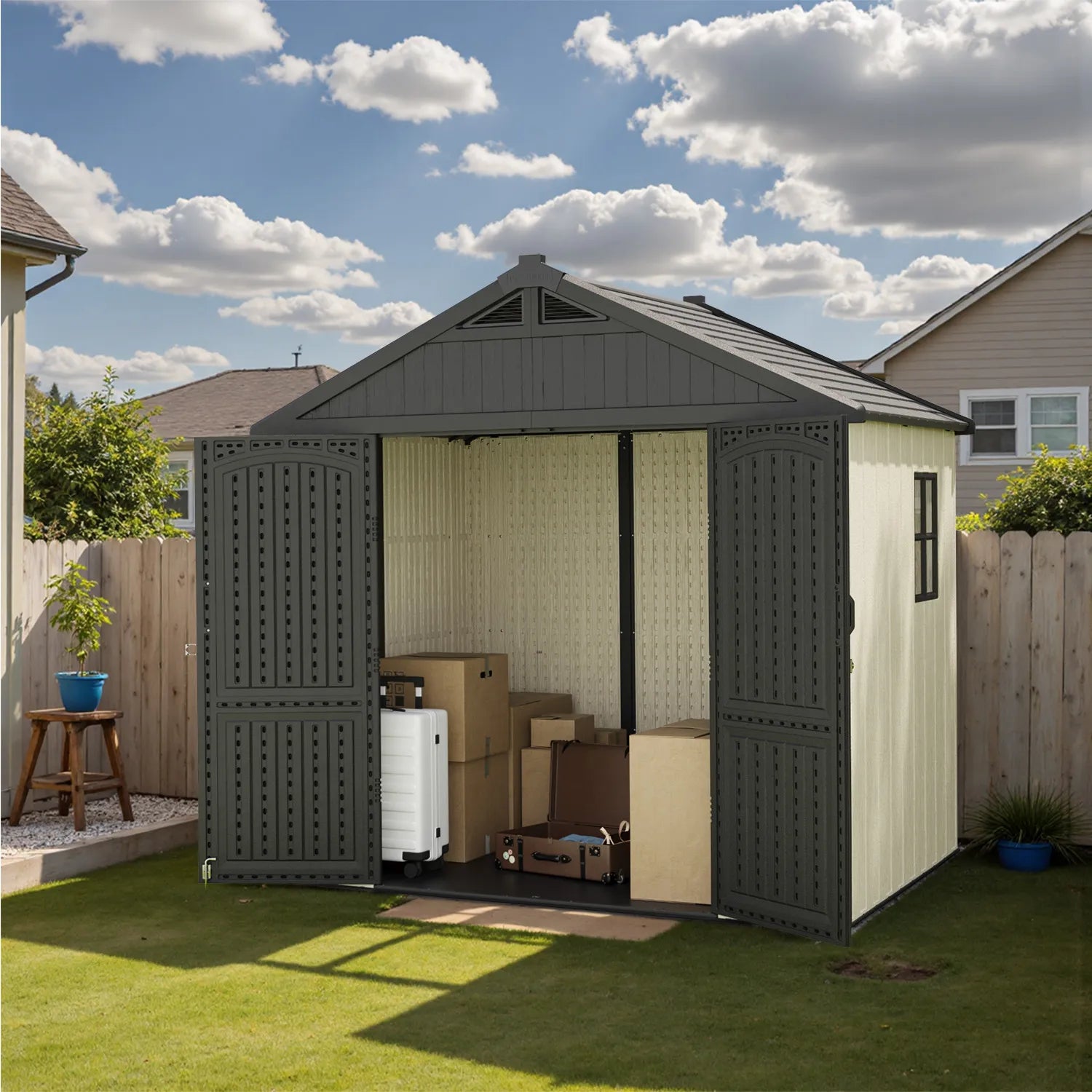 Constructed using recyclable and eco-friendly materials, our resin storage shed promotes a sustainable approach to backyard living.