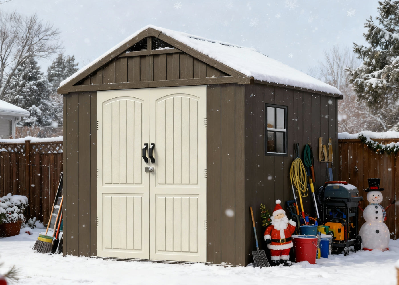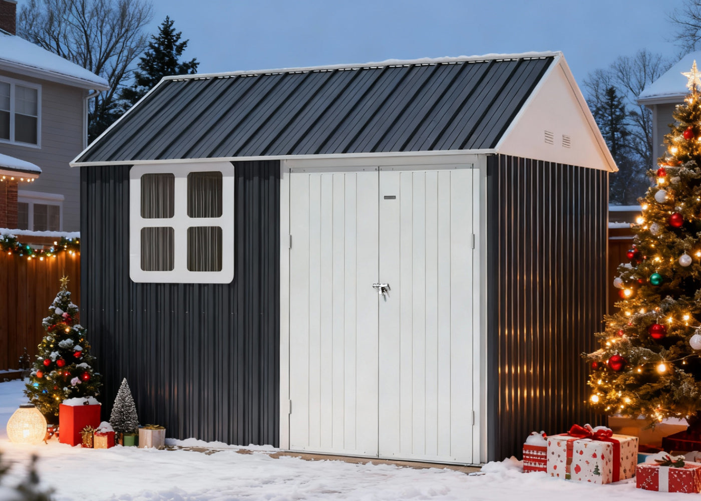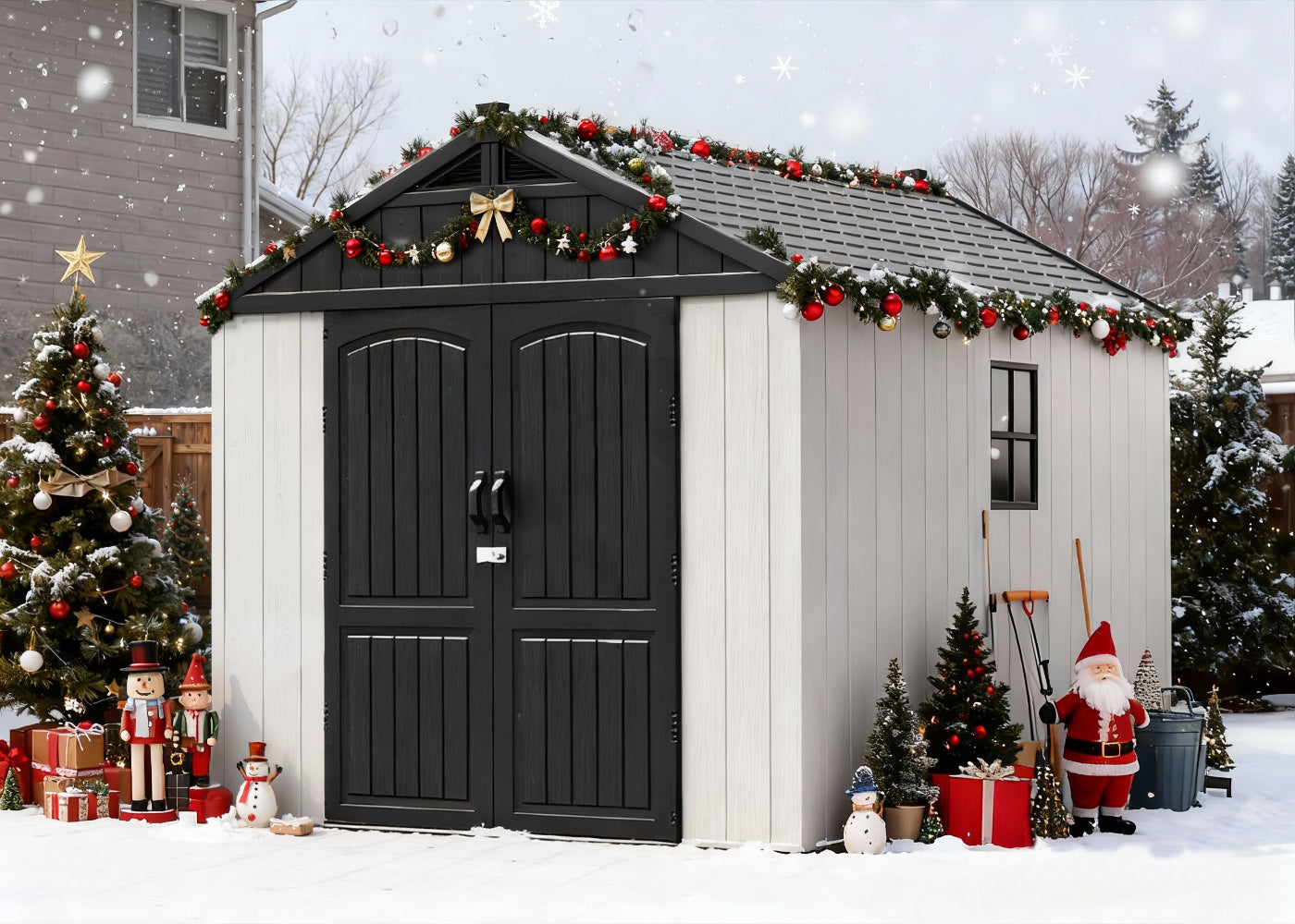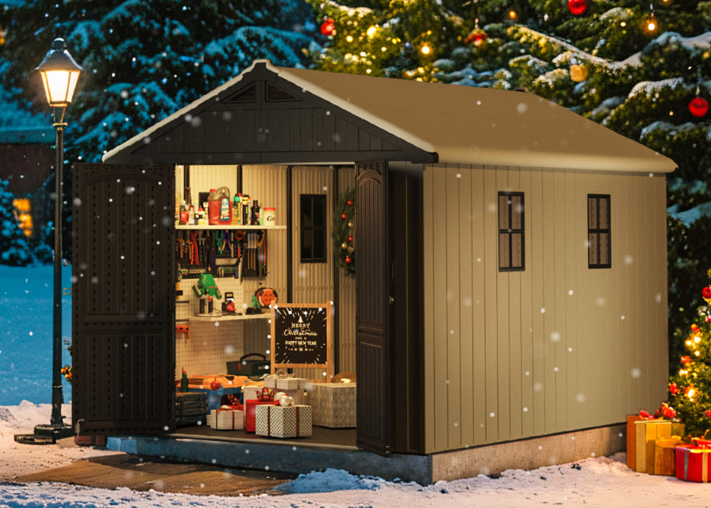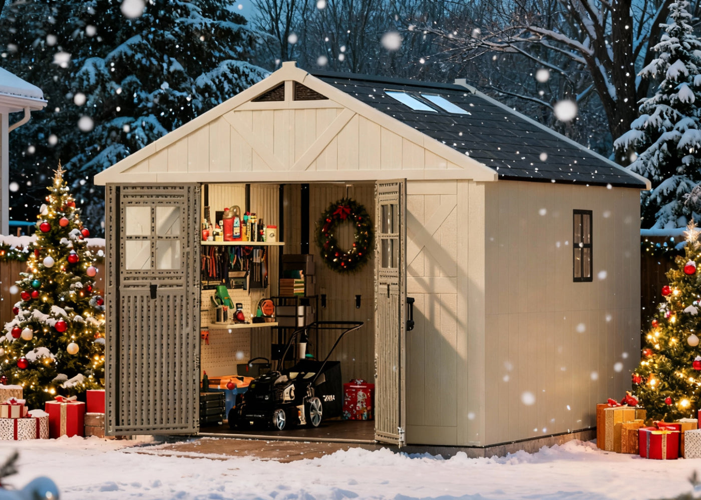 Declutter your house and build the excitement! Your shed is the ultimate Christmas Command Center for storing gifts and decorations.