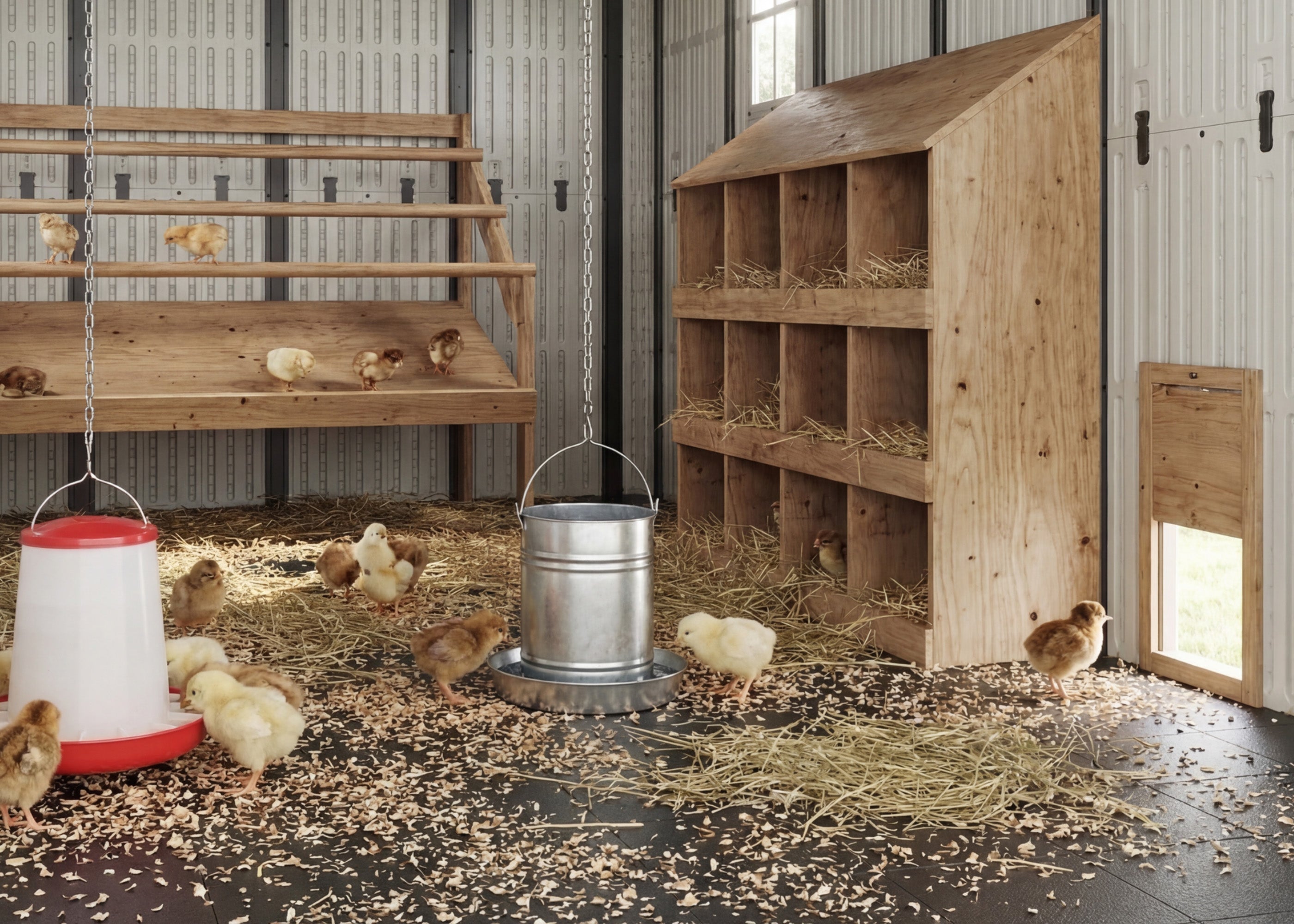 Remove shelves, stored items, and any interior decorations unsafe for poultry. Thoroughly clean the area, removing dust, cobwebs, or rodent nests. Residual odors or toxic residues may harm the flock.