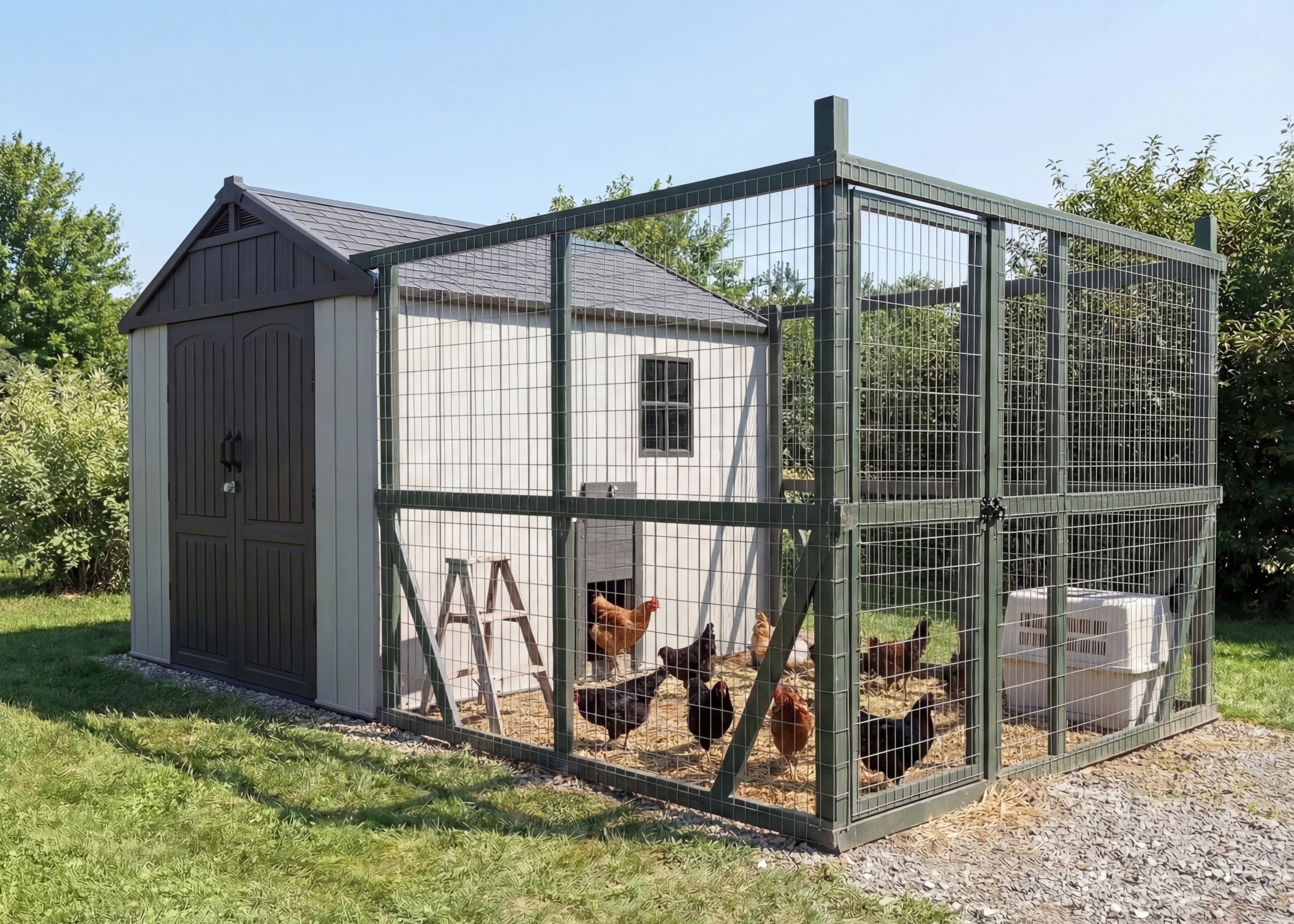 Chickens require a secure outdoor exercise area—connected to or adjacent to the coop: Enclose the space with welded wire mesh, burying the mesh edges to prevent digging. A covered enclosure helps deter aerial predators.