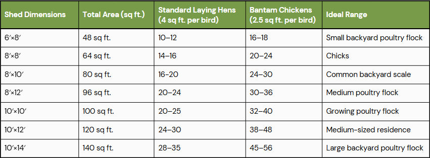 ⚠ The above figures assume birds have regular outdoor access. If birds are confined indoors all day, free-range space must be increased by 25% to 50%.