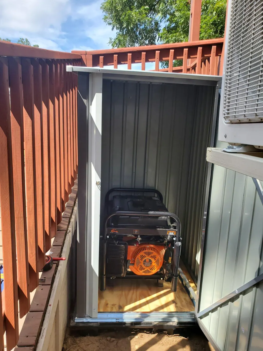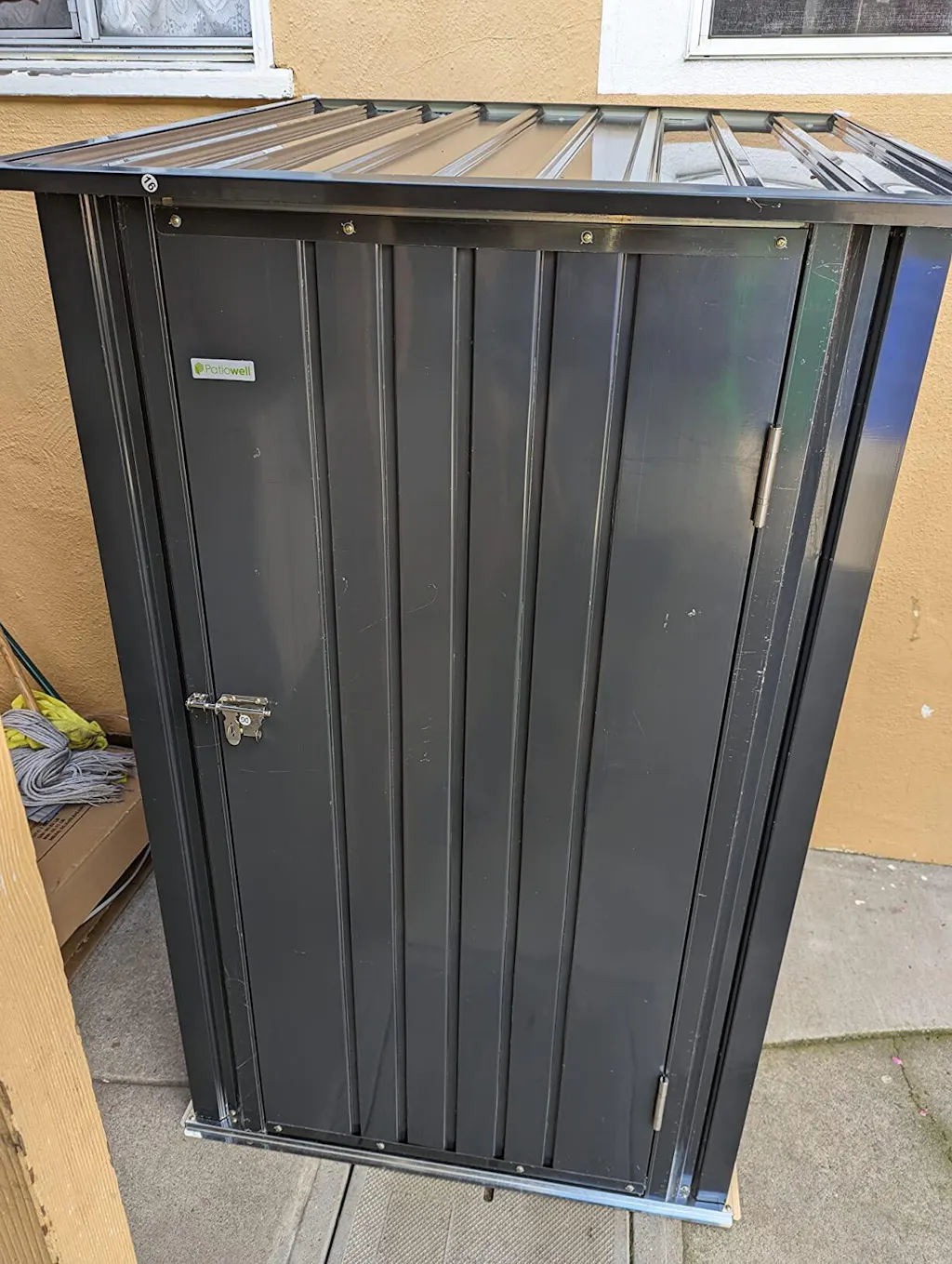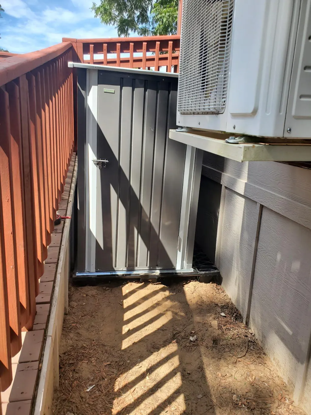 3x3 metal storage shed standing in backyard