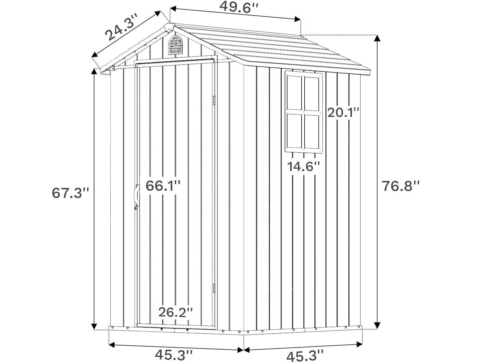 Our 4x4 plastic shed offers excellent ventilation, moisture resistance, and a sloped roof for drainage. With sturdy door handles and a lockable design, it provides easy access and security.