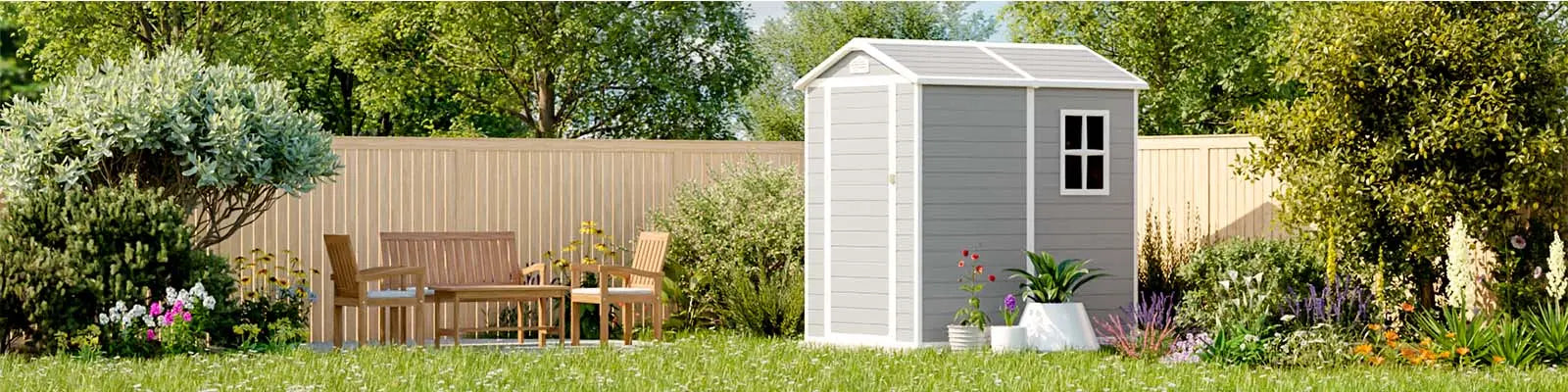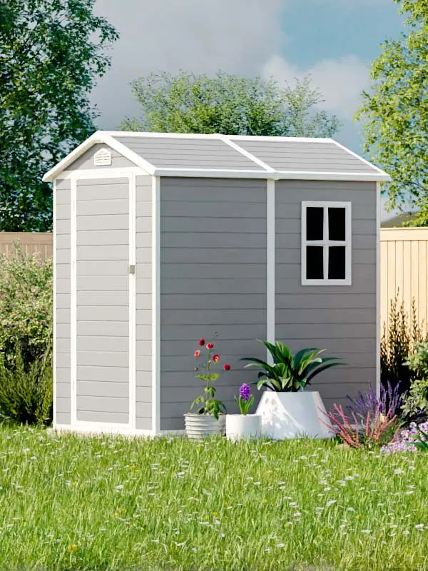 A space-saving shed ideal for storing garden tools, outdoor equipment, and seasonal items, perfect for smaller patios or gardens.