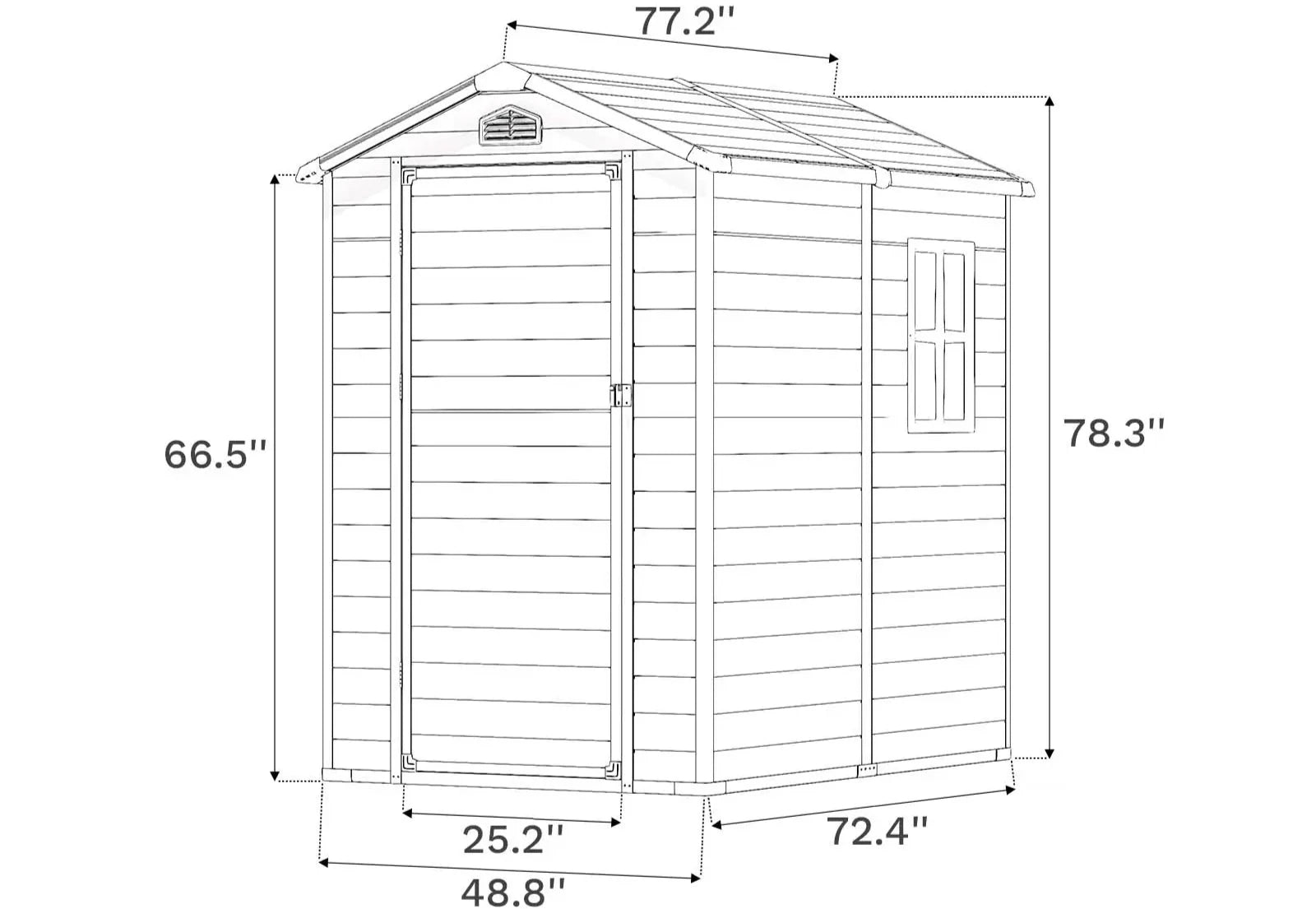 Made from UV-resistant plastic, this shed is designed to withstand the elements, including rain, wind, and sun, without rusting or fading, ensuring long-term durability.