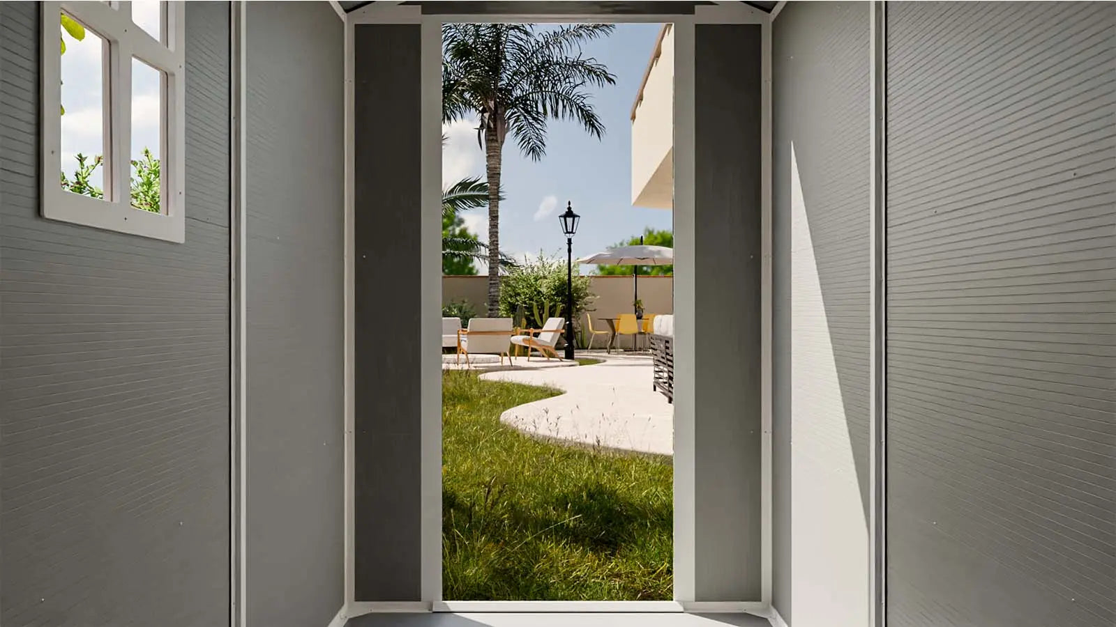 Equipped with built-in vents to promote airflow, this shed helps prevent moisture buildup, protecting stored items from mold, mildew, and odors.