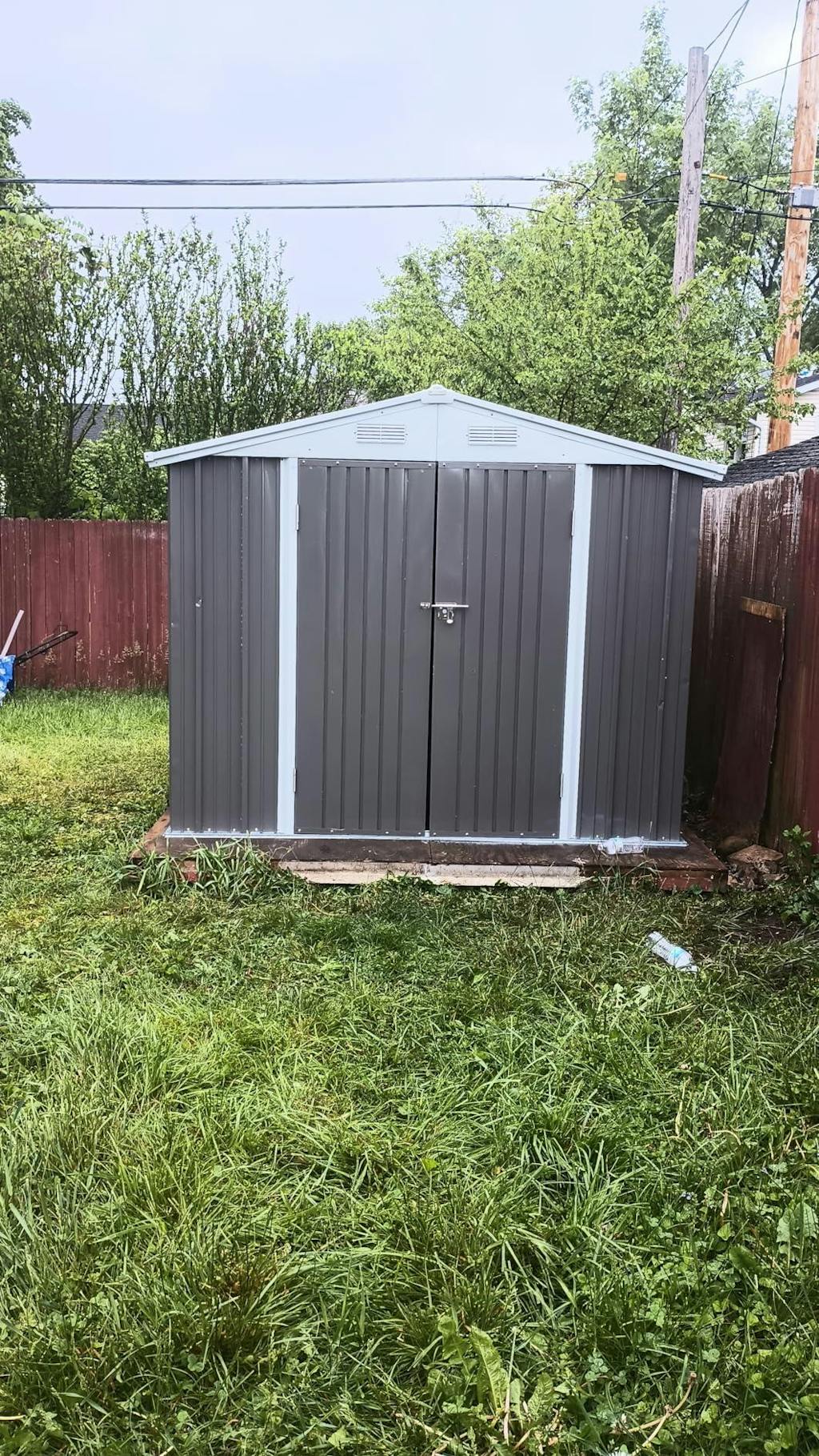 This compact storage shed provides ample space for organizing lawn equipment, bicycles, and gardening tools, keeping your outdoor area tidy and functional.